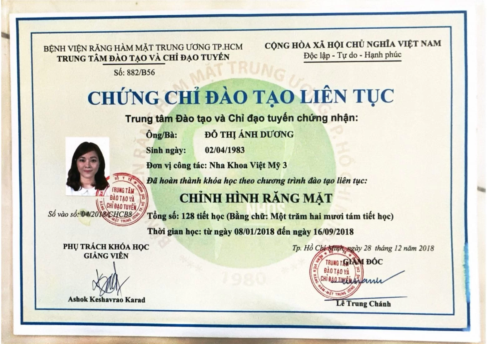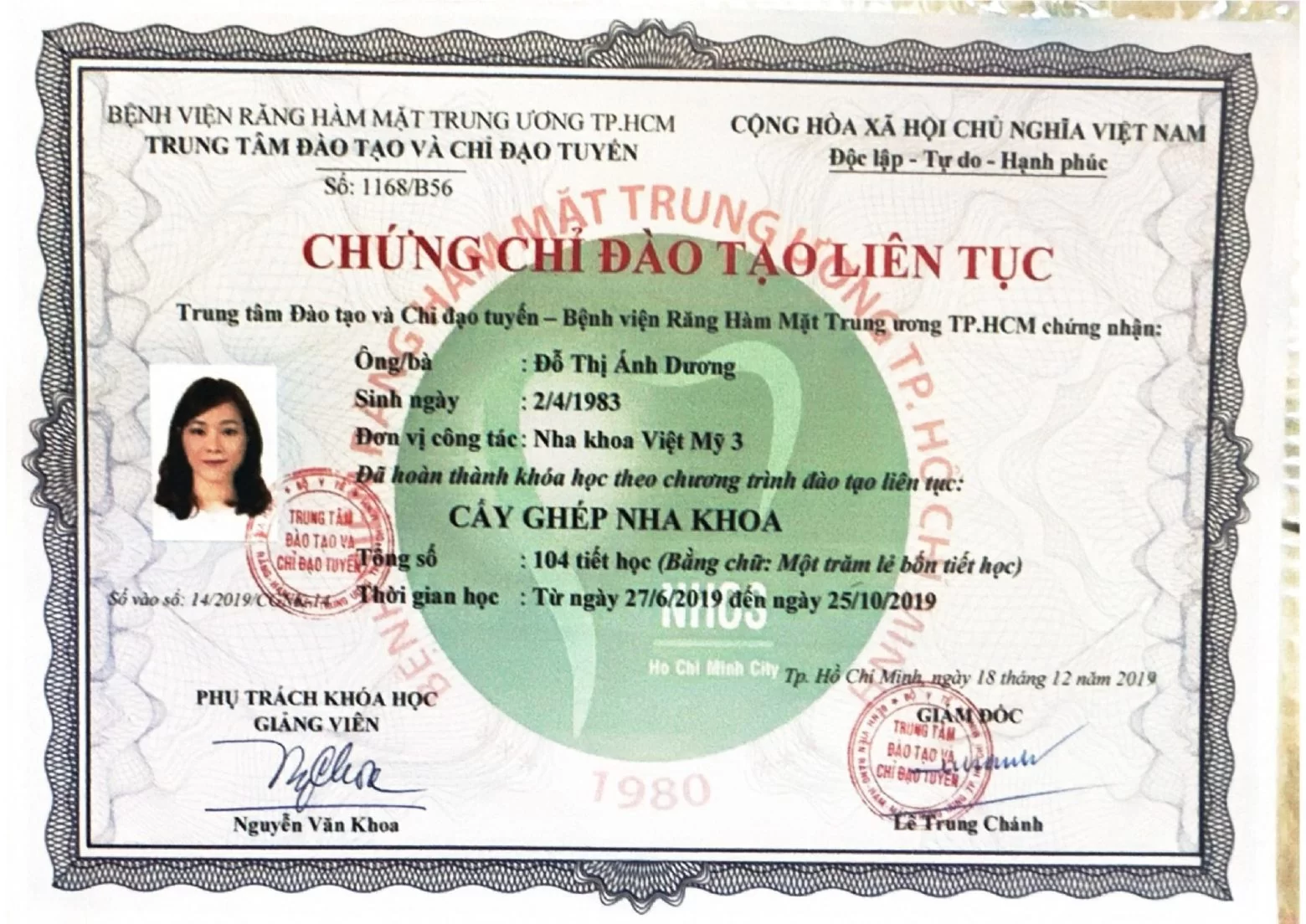 1. Thạc sĩ Răng Hàm Mặt Đại học Y Dược TP.HCM