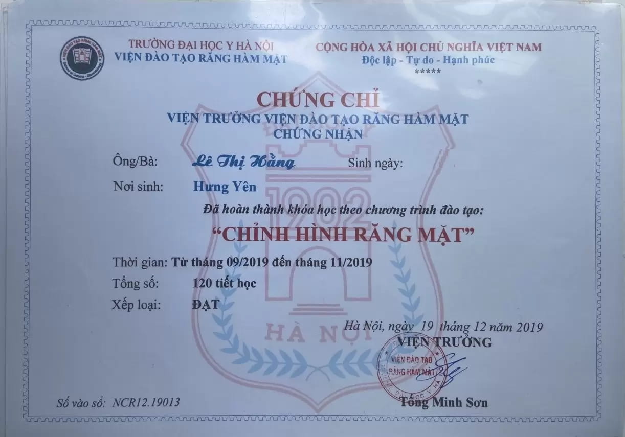 - Kiến thức phục hình-phẫu thuật: Hoàn thành các chương trình chuyên sâu về cấy ghép Implant trong các trường hợp tiêu xương do Bệnh viện Răng Hàm Mặt Trung Ương tổ chức, cho thấy tầm nhìn điều trị toàn diện.