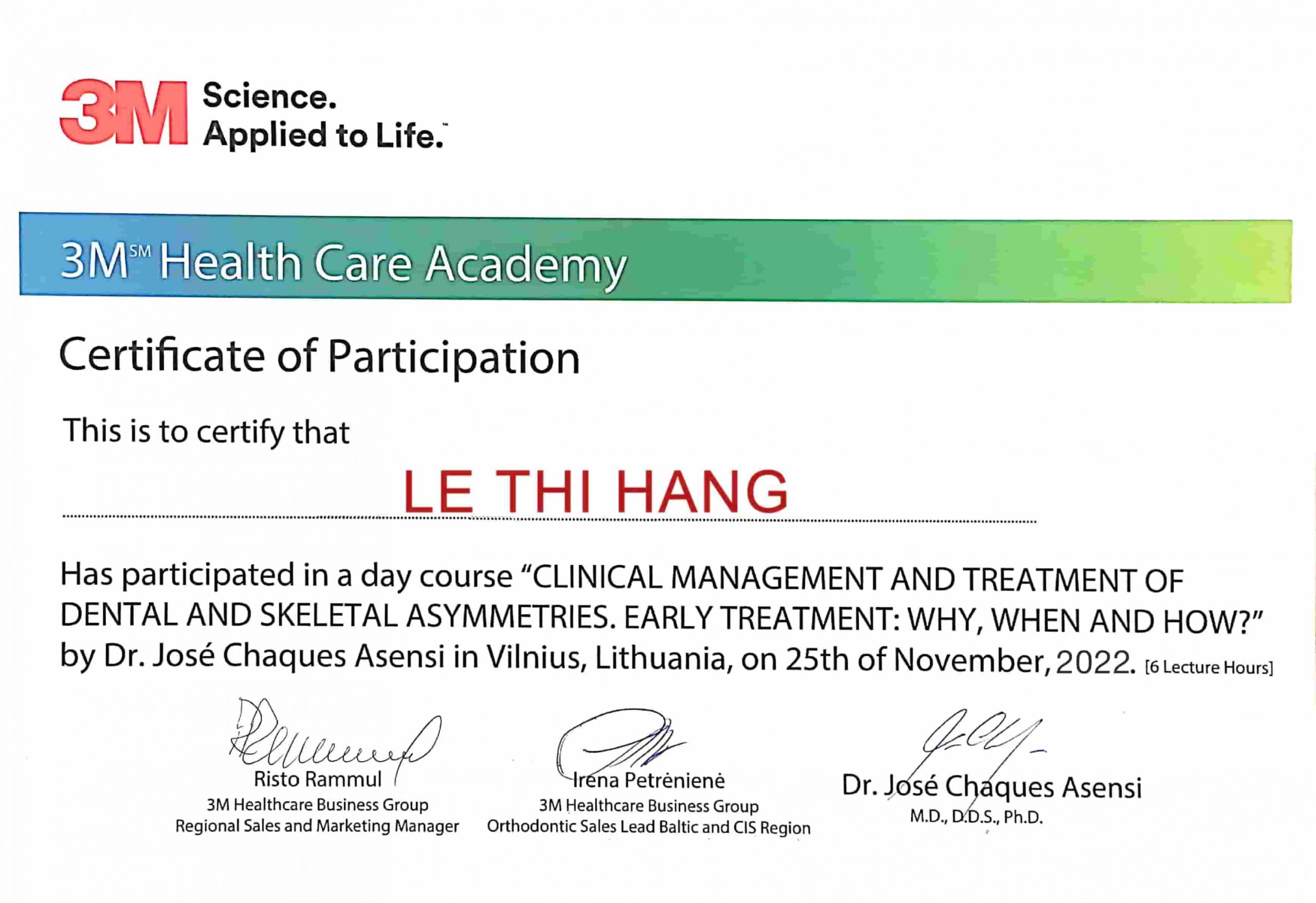 - Cơ sinh học phức tạp: Hoàn thành khóa đào tạo chuyên sâu về kiểm soát lâm sàng, điều trị bất đối xứng xương-răng của 3M, nâng cao năng lực xử lý các ca sai khớp cắn phức tạp.