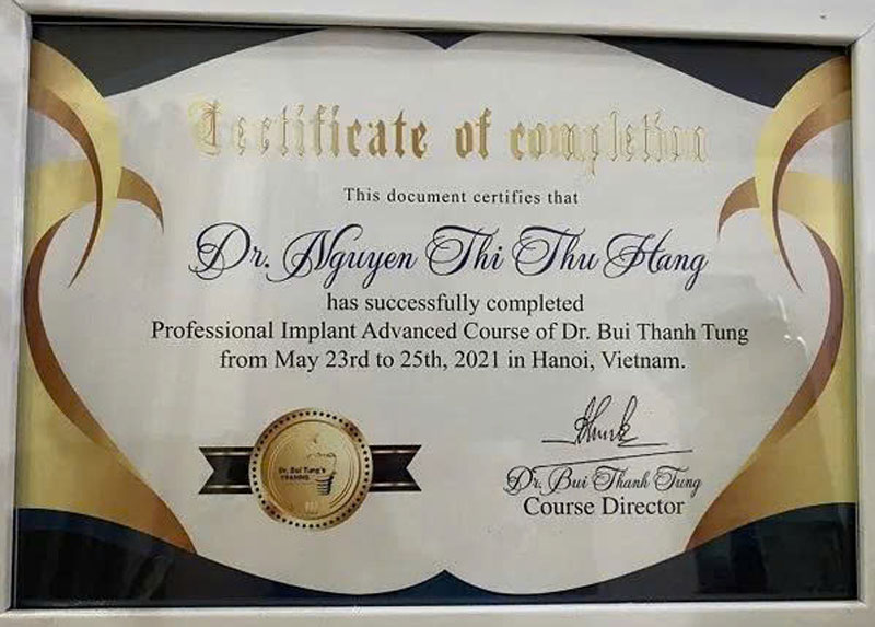 - Chứng chỉ Nâng cao cấy ghép Implant chuyên nghiệp.