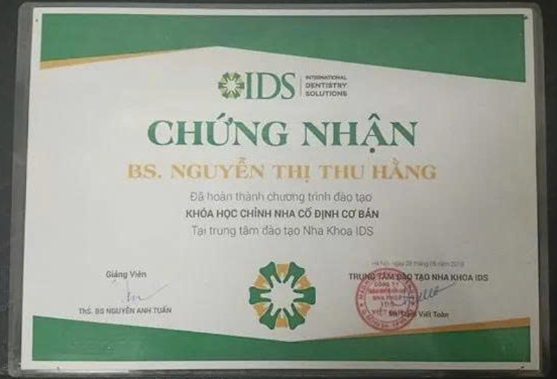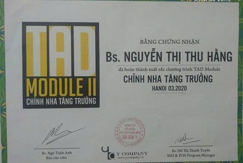 - Chứng chỉ Chỉnh nha tăng trưởng và chỉnh nha cố định cơ bản.
