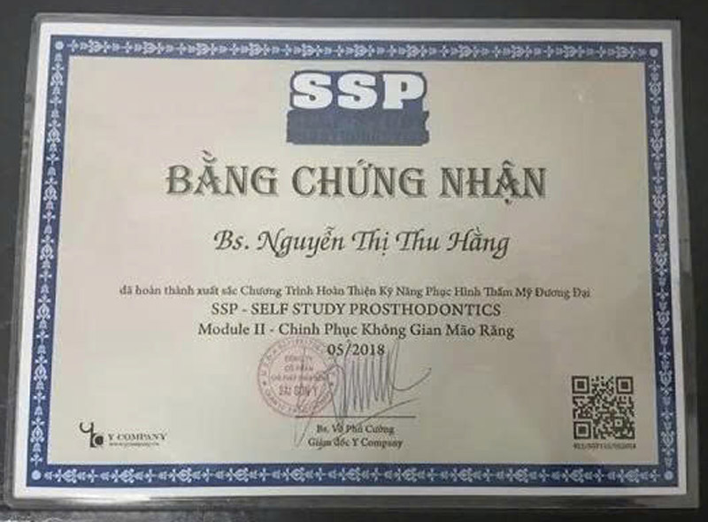 - Chứng chỉ Hoàn thiện kỹ năng phục hình răng sứ.